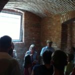 Po wizycie w Młodzieżowym Domu Kultury ruszyliśmy wzdłuż parku w kierunku tak zwanego Kawczego Wzgórza na którym znajduje się dawna willa Sonnabenda (dziś Gimnazjum Katolickie). Jest to najwyższy naturalny punkt w Stargardzie. W parku tym znajdował się niegdyś Kirku, czyli żydowski cmentarz. Zgodnie z wiarą judaistyczną znajduje się on tam nadal (kirkuty nie podlegają przeniesieniu) pomimo, iż nie ma po nim najmniejszego śladu. Fragmenty mace w tego cmentarza można obejrzeć obecnie w Muzeum Archeologiczno-Historycznym w Stargardzie bądź w elementach architektury miejskiej (np. murki w parku) . W zadumie wysłuchaliśmy historii początków stargardzkiej gminy żydowskiej oraz tym co się z nią stało po dojściu nazistów do władzy w Niemczech. W dalszej kolejności przeszliśmy na ulicę Skarbową przy której znajduje się ruina budynku, w którym niegdyś znajdowała się pierwsza miejska elektrownia. To w tym miejscu rozpoczęła się elektryfikacja miasta w XIX wieku.