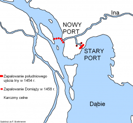 Wojna Szczecina ze Stargardem o handel morski (zw. wojną pszenną) – konflikt zbrojny prowadzony w latach 1454-1464, o podłożu sięgającym połowy XIV wieku, o prymat w handlu morskim. Wojna została spowodowana przez wzajemne nierespektowanie – de facto sprzecznych ze sobą przywilejów. Szczecin miał prawo składu (wszystkie statki wypływające z księstwa winny zawinąć do szczecińskiego portu), natomiast Stargard posiadał prawo wolnej […]