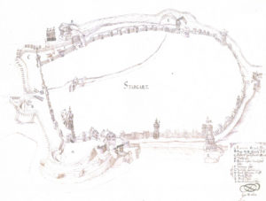 Stary mur miejski we wschodniej części Stargardu od strony Bramy Wałowej został rozebrany stosunkowo niedawno. Wówczas na jego miejscu zbudowano drewniany płot. W tej części muru, około pięćdziesięciu kroków od Bramy Wałowej, w latach sześćdziesiątych XIX wieku znajdowała się Baszta Kowalska, która od pozostałych, jeszcze dzisiaj istniejących wież, różniła się znacznie większym obwodem i mniejszą wysokością. Cylindryczna baszta unosiła stożkowy, ceglany dach zakończony smukłym, żelaznym czubkiem, na którym, jak na większości stargardzkich wież, umieszczony był pomorski gryf.